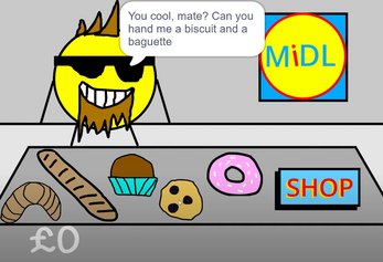Rich guy: Hello, I would like a biscuit and a baguette.